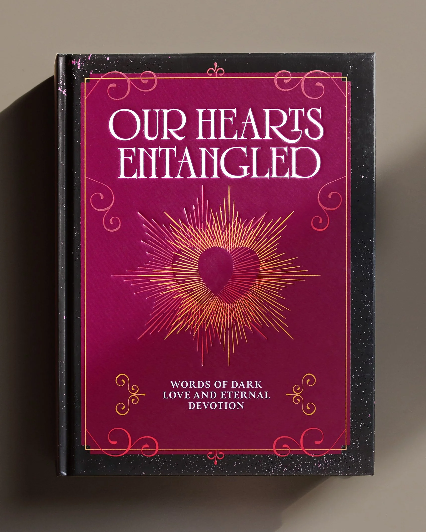 Our Hears Entangled is a romantic collection of gothic love poems and quotes. Words and dark graphic elements intertwine, enhancing the mood of mystery and romance.